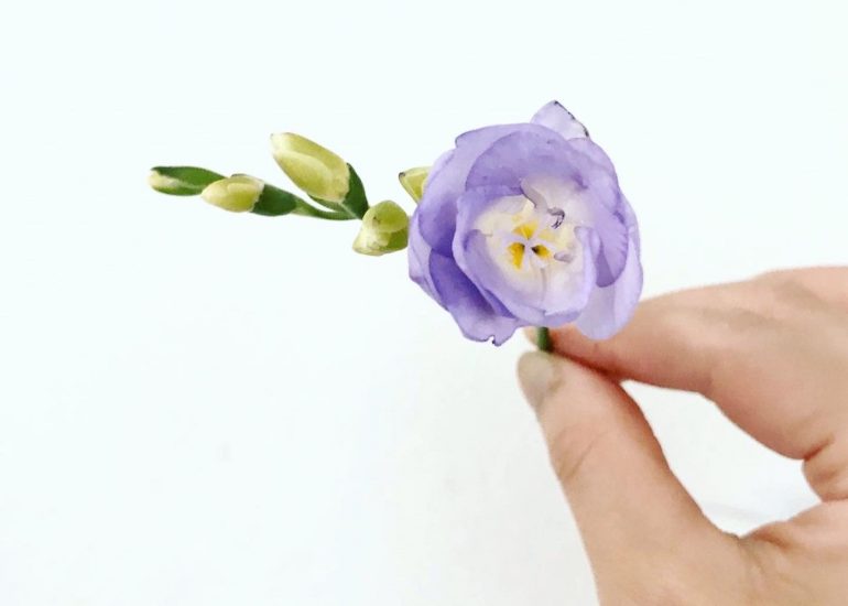 Fiori freschi di oggi, Rosa gialla e Fresia Lilla. 今日のお花、黄色のバラと藤色のフレジア。
